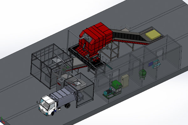This plan is mainly suitable for rapid capacity reduction treatment of mixed large waste. Its compact and reasonable layout, fully sealed structure, and negative pressure dust removal design can effectively suppress dust leakage and achieve a dust-free working environment; The core equipment is a motor driven dual axis shear crusher, with a unique crushing and shearing method that can easily crush any type of large waste quickly.